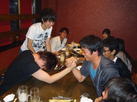 そこから、ぼちぼち片づけを始めまして、部室前であいさつをさせてもらった後7時半から打ち上げ開始。